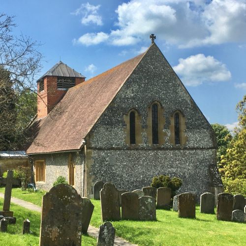 Church. 13th century foundation, extensively restored and rebuilt 1896-7 by C.C. Rolfe in Early English style. Flint walls with Bath stone dressings, tile hung and lead roofed belfry and tiled main roof. Nave, Chancel, north aisle and south porch, steeply pitched roof with gable parapets and short square belfry over west end.