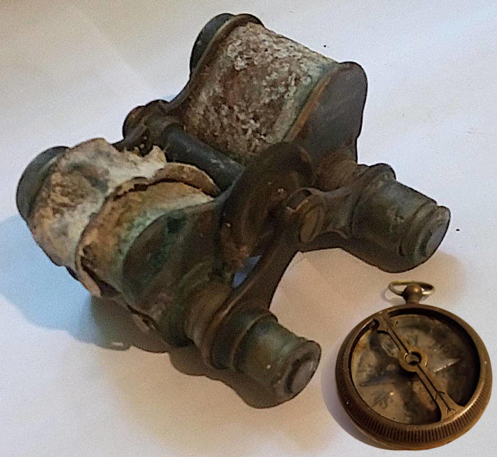John Painting's binoculars and compass from WW1 |