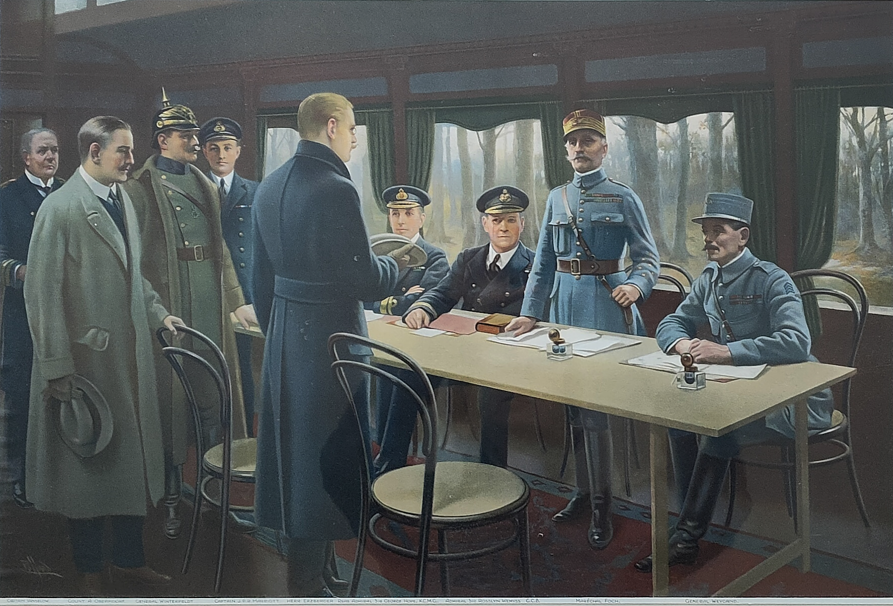 Captain Marriott from Totterdown, Inkpen, is fourth from the left in picture below. The Armistice, which ended hostilities on the Western Front of World War I, was signed at 5:00 AM on November 11, 1918, in the Rethondes Clearing of the Compiègne Forest in France. This agreement, between the Allies and Germany, took effect at 11:00 AM, the "eleventh hour of the eleventh day of the eleventh month," marking the end of major fighting.